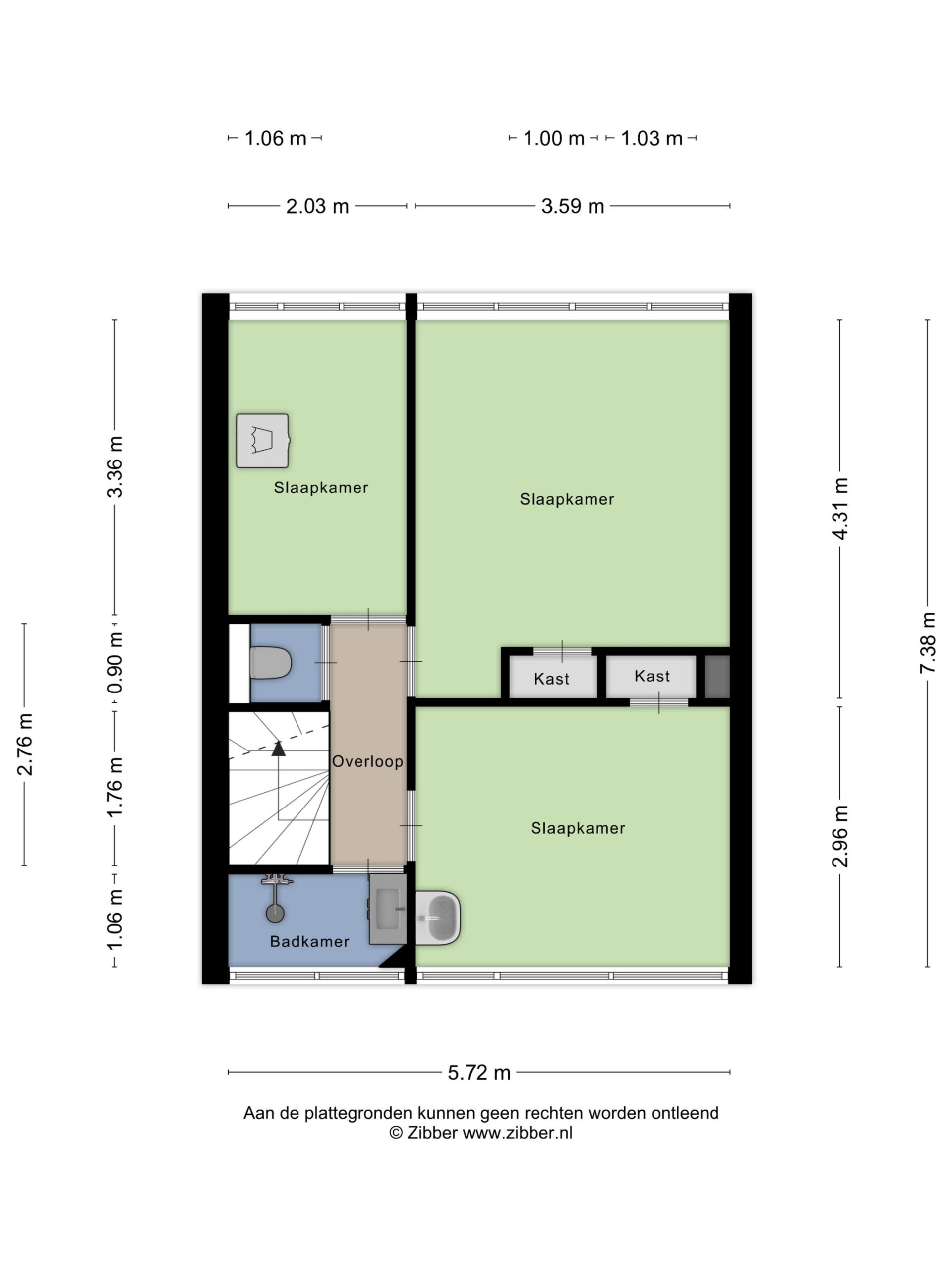 De overloop en slaapkamers zijn afgewerkt met laminaat. Vanuit de overloop is er toegang tot 3 slaapkamers, de badkamer, een los toilet en de tweede verdieping.