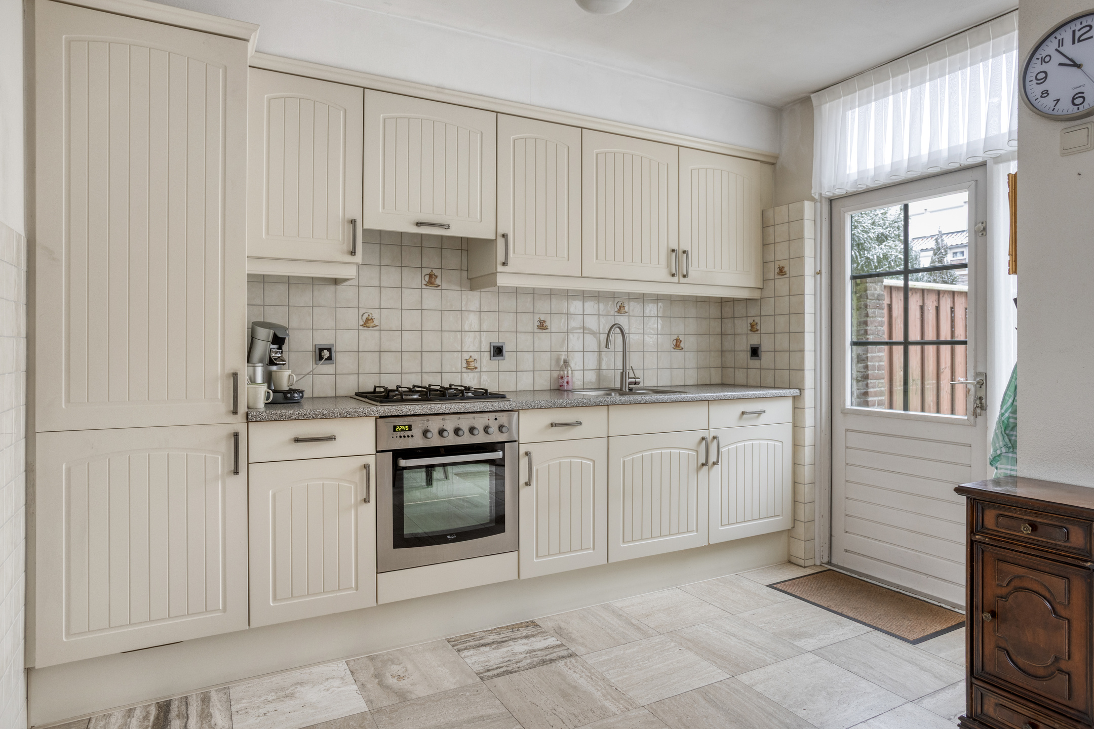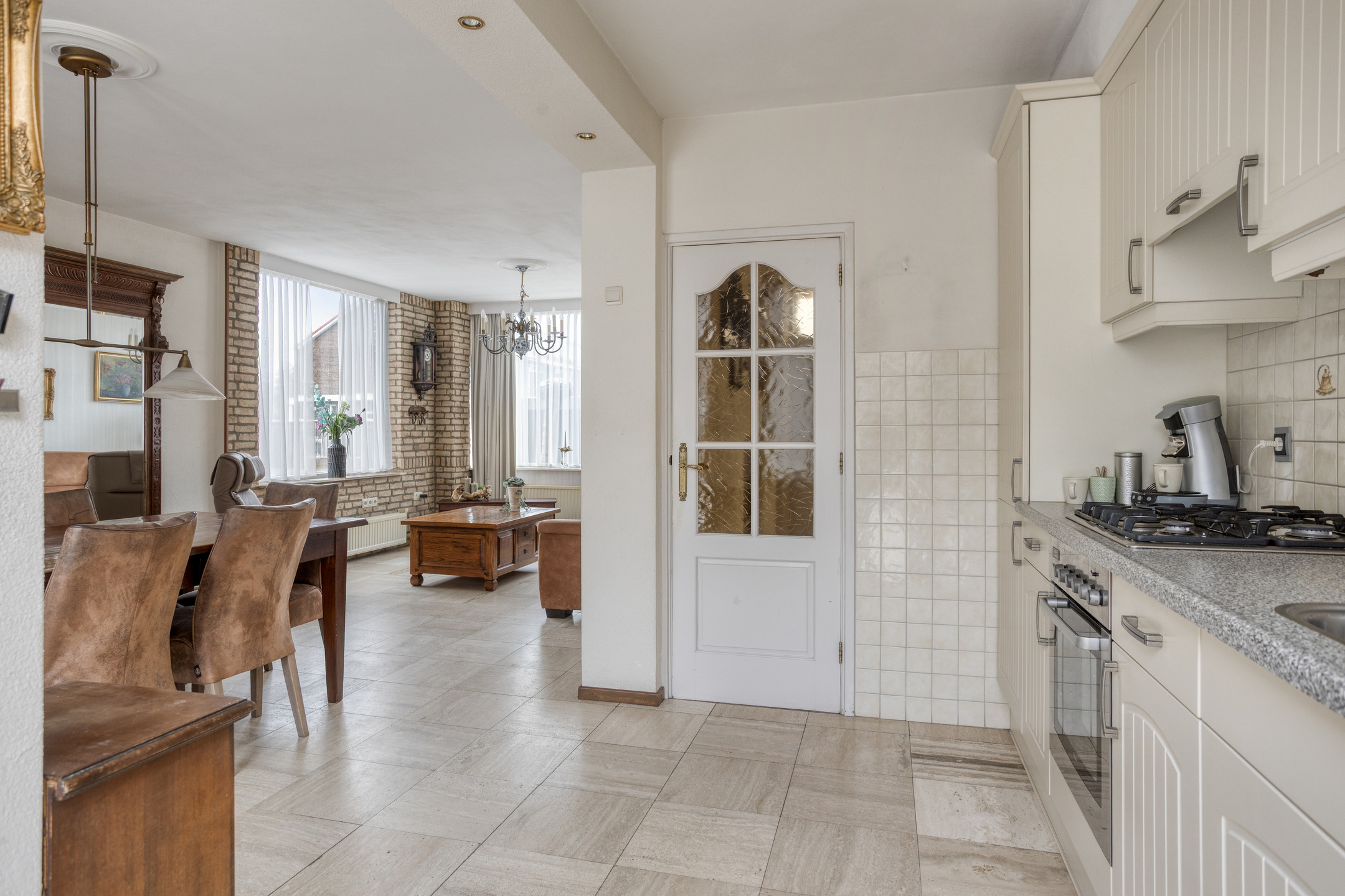 De open keuken sluit aan op het eetgedeelte en is uitgerust met een 4-pits kookplaat, oven en een koelkast en diepvries die circa een half jaar oud zijn. Door de open opstelling en de aanwezige ramen voelt ook deze ruimte licht en ruim aan.