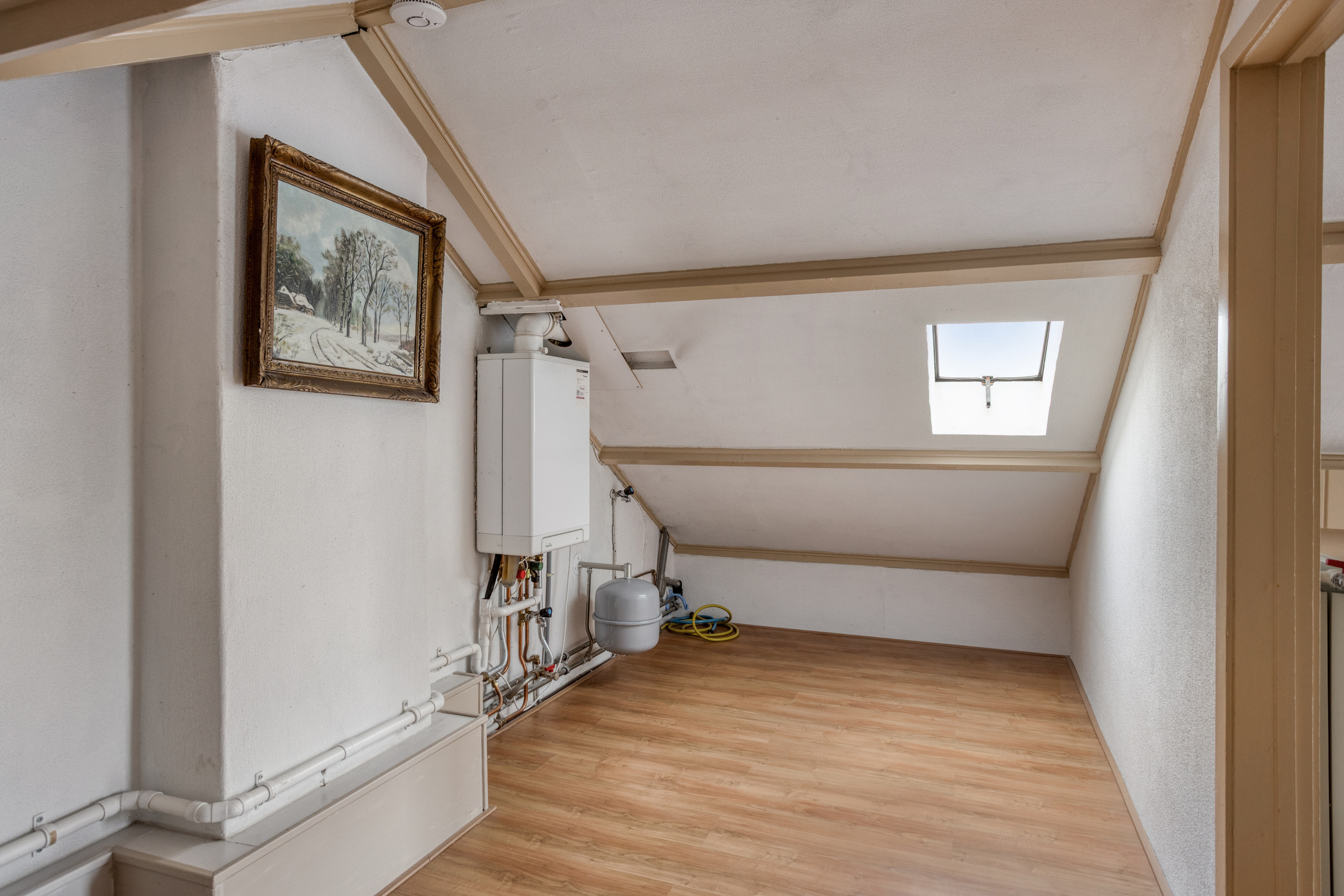 Op de overloop bevinden zich de cv-ketel (Intergas HRE Kombi Kompakt, bouwjaar 2017), een dakraam en opbergruimte. De tweede verdieping beschikt over een geïsoleerd dak.