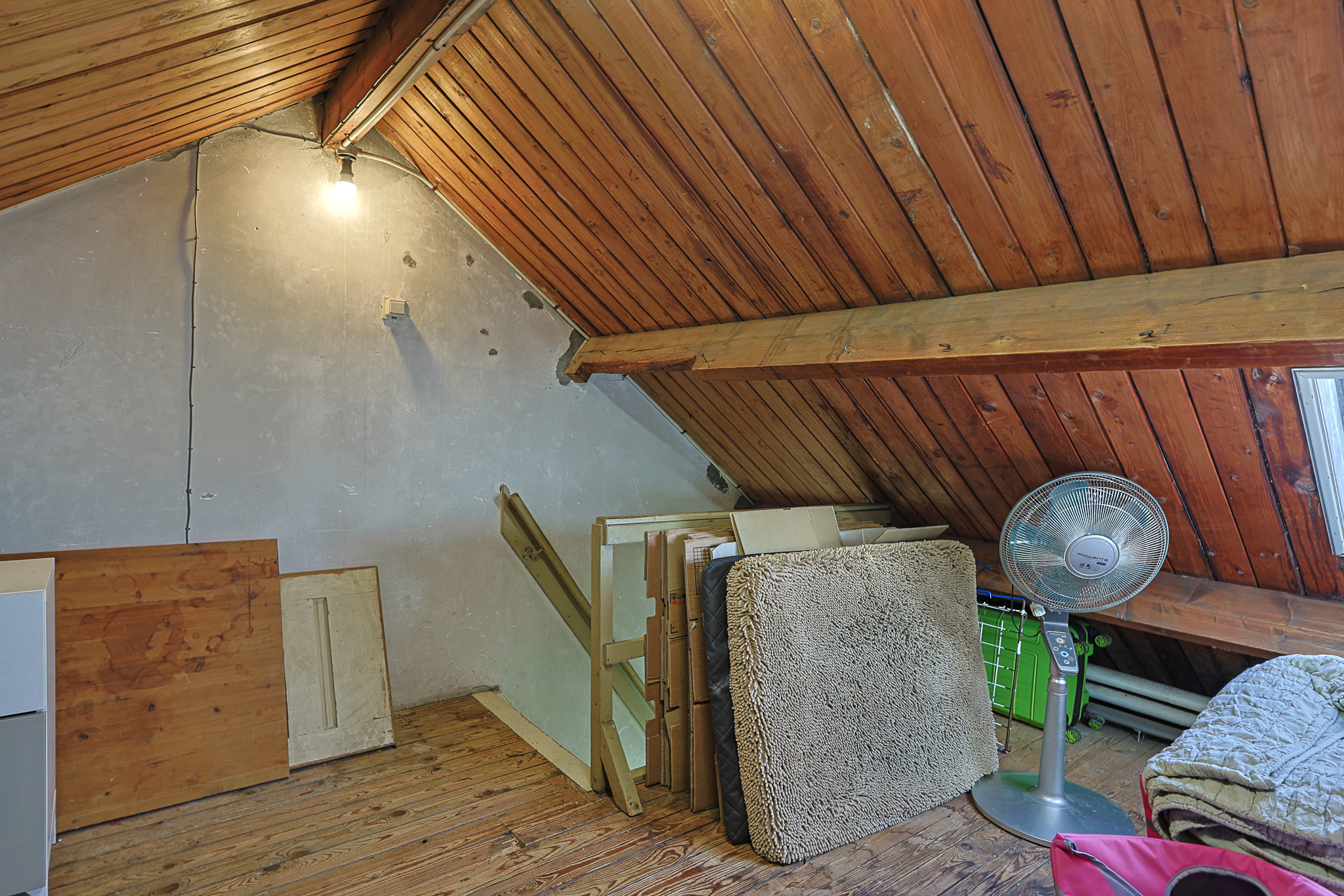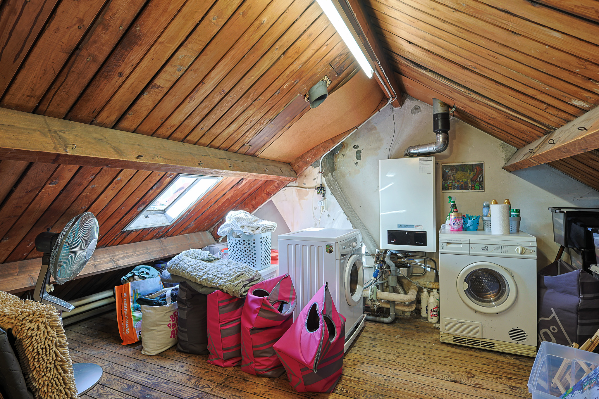 De zolder wordt momenteel gebruikt als bergruimte en biedt plaats aan de cv-ketel, wasmachine en droger. Dankzij het dakraam komt er prettig daglicht binnen. Deze verdieping biedt volop mogelijkheden: van het creëren van een derde slaapkamer tot het plaatsen van een dakkapel waarmee zelfs twee extra slaapkamers gerealiseerd kunnen worden. Let op: de zolder is niet meegenomen in het opgegeven woonoppervlak. Wordt deze ruimte als volwaardige slaapkamer ingericht, dan komt de totale woonoppervlakte uit op circa 87 m² in plaats van de huidige 67 m².