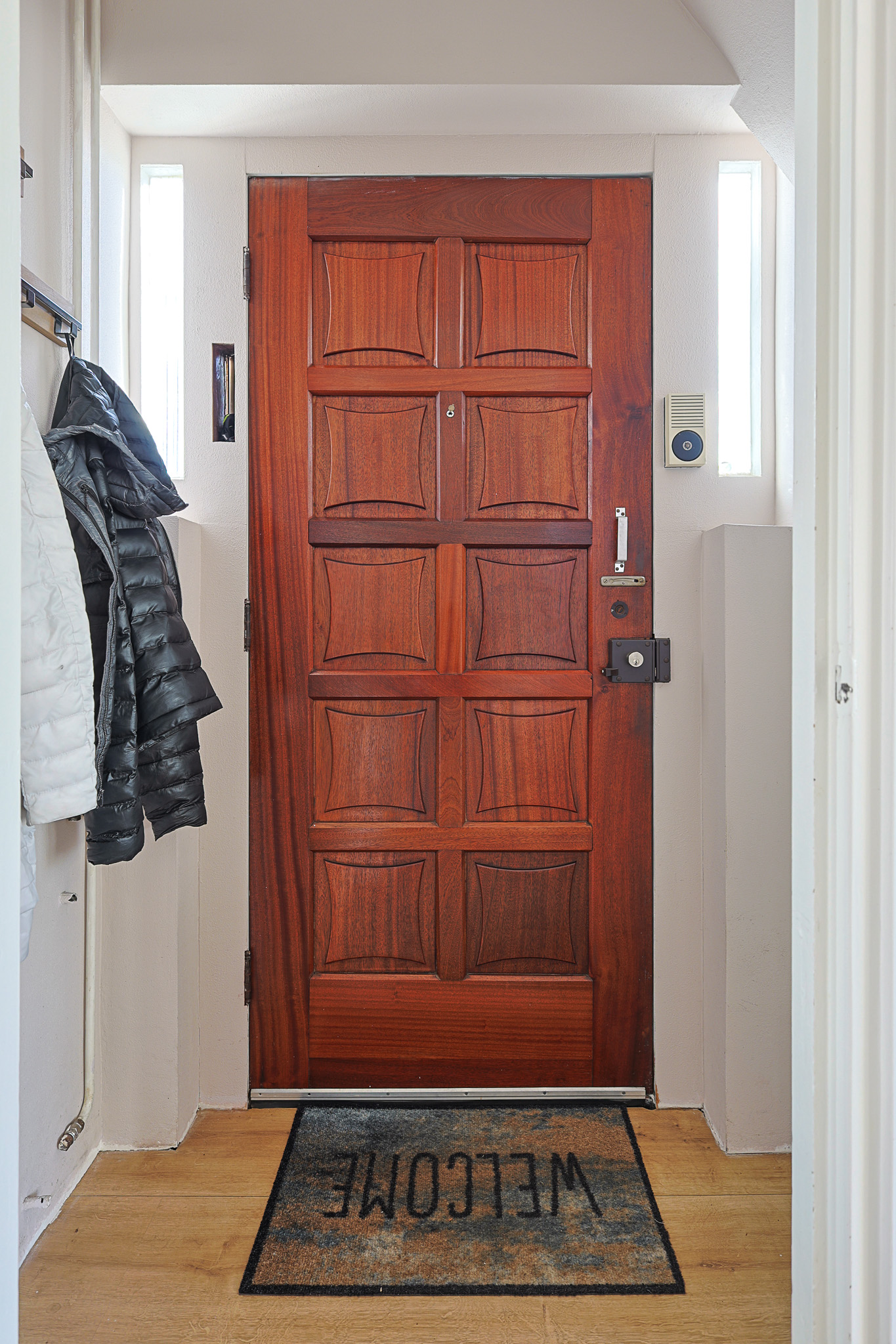 De entree is licht en voorzien van een laminaatvloer die naadloos doorloopt in de woonkamer. In de hal bevindt zich een kelder, ideaal als opbergruimte. Vanuit de entree heeft u toegang tot de woonkamer.