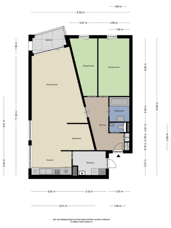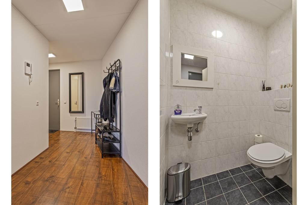 Bij binnenkomst valt direct de ruime hal op met een laminaatvloer, meterkast (2 aardlekschakelaars en 6 groepen) en volledig betegeld, modern toilet met fonteintje. Vanuit hier bereik je de woonkamer, twee slaapkamers en de badkamer.