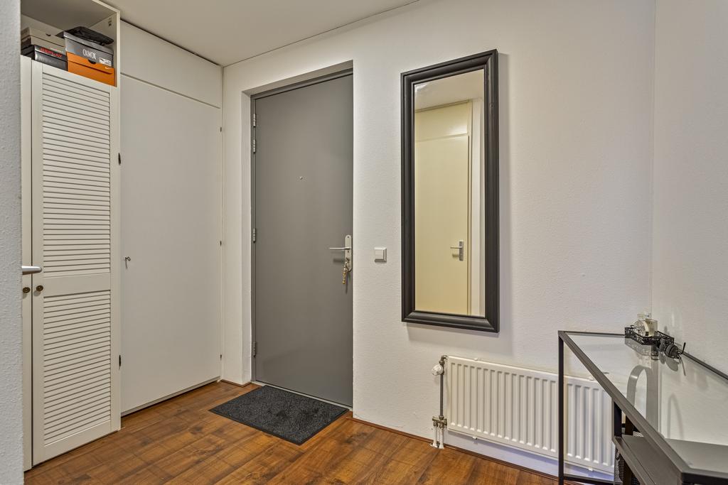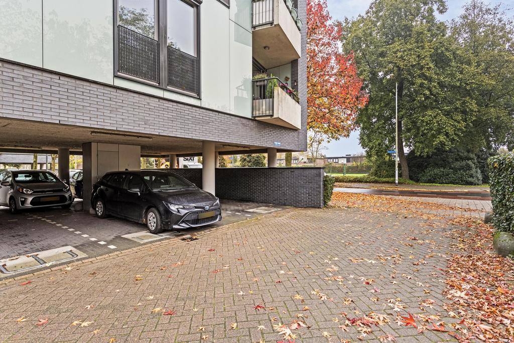 Via een overdekte entree bereikt u niet alleen het appartement zelf, maar ook de inpandige berging, ideaal voor opslag of als klusruimte.