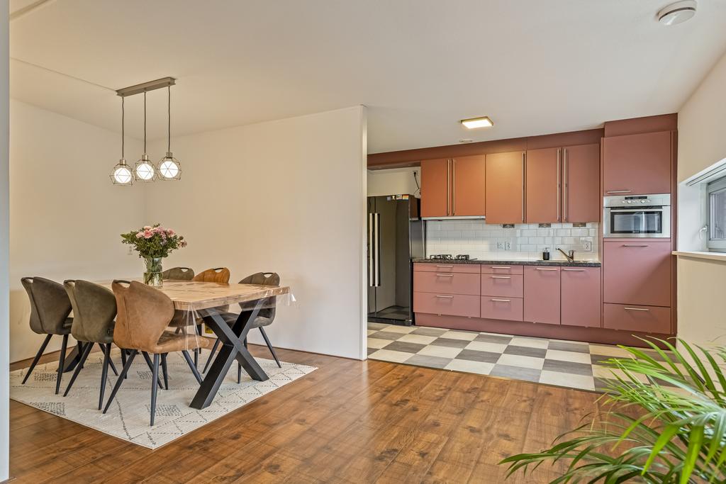 Een gezellige plek om samen te komen. Het eetgedeelte sluit mooi aan op de woonkamer en biedt ruimte voor een grote eettafel – perfect voor lange, gezellige diners.