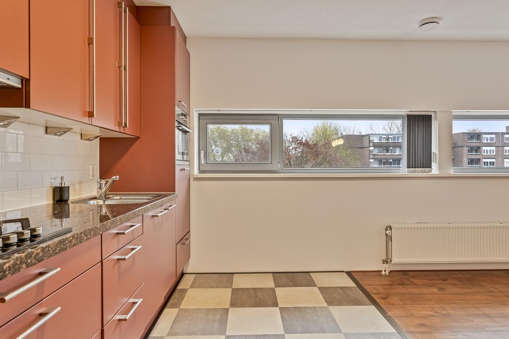 Enjoy the view of the Woensel XL shopping centre from the spacious south-facing balcony. The tiled floor gives the balcony a cosy feel.