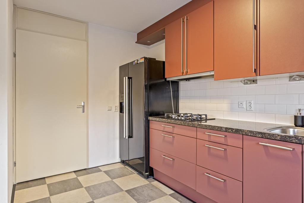 De keuken staat in open verbinding met de woonkamer en is voorzien van diverse onder- en bovenkastjes en inbouwapparatuur waaronder een vaatwasser (Siemens), 4-pits gaskookplaat, afzuiging en een koelkast. Daarnaast is de keuken voorzien van een draai-/kiepraam.