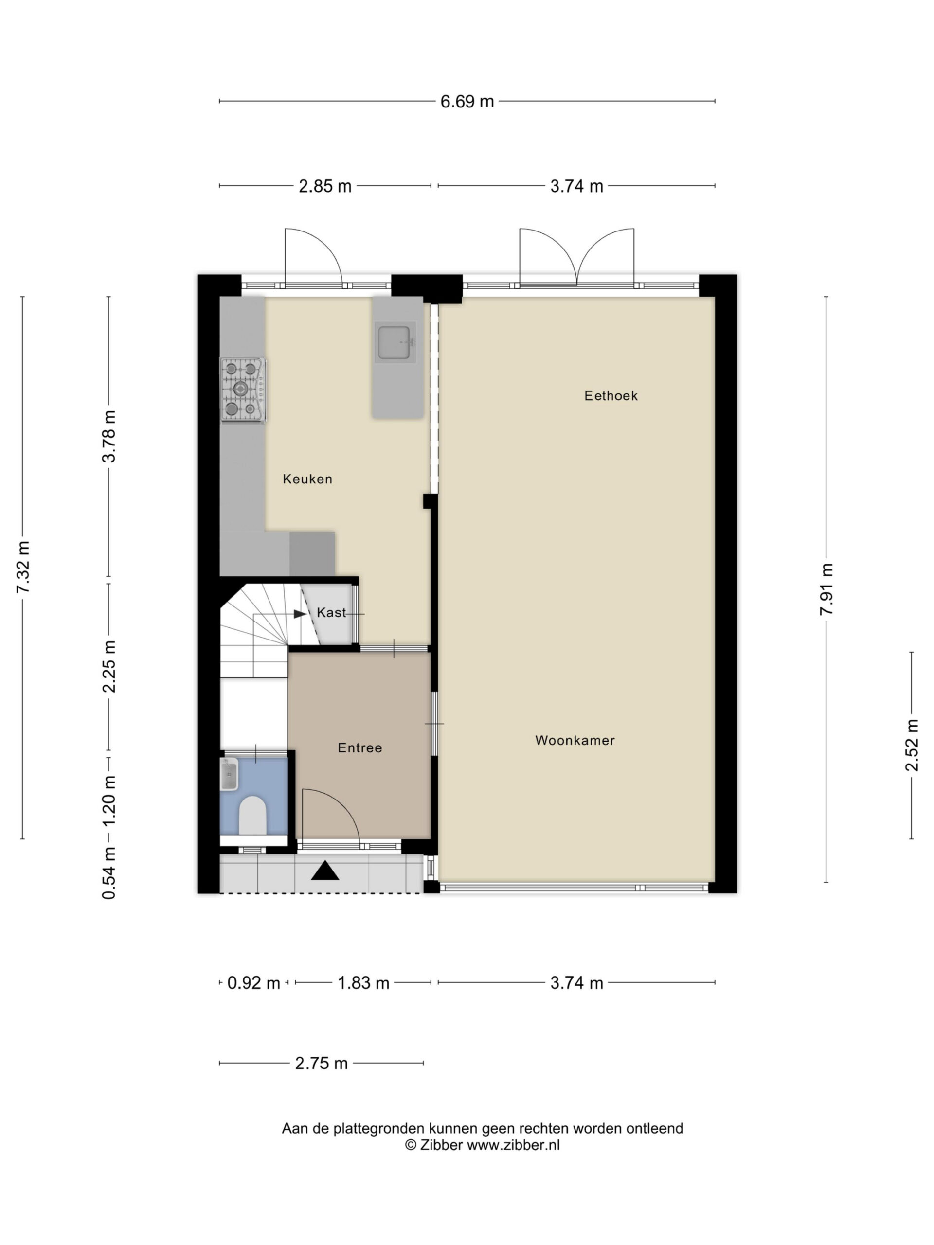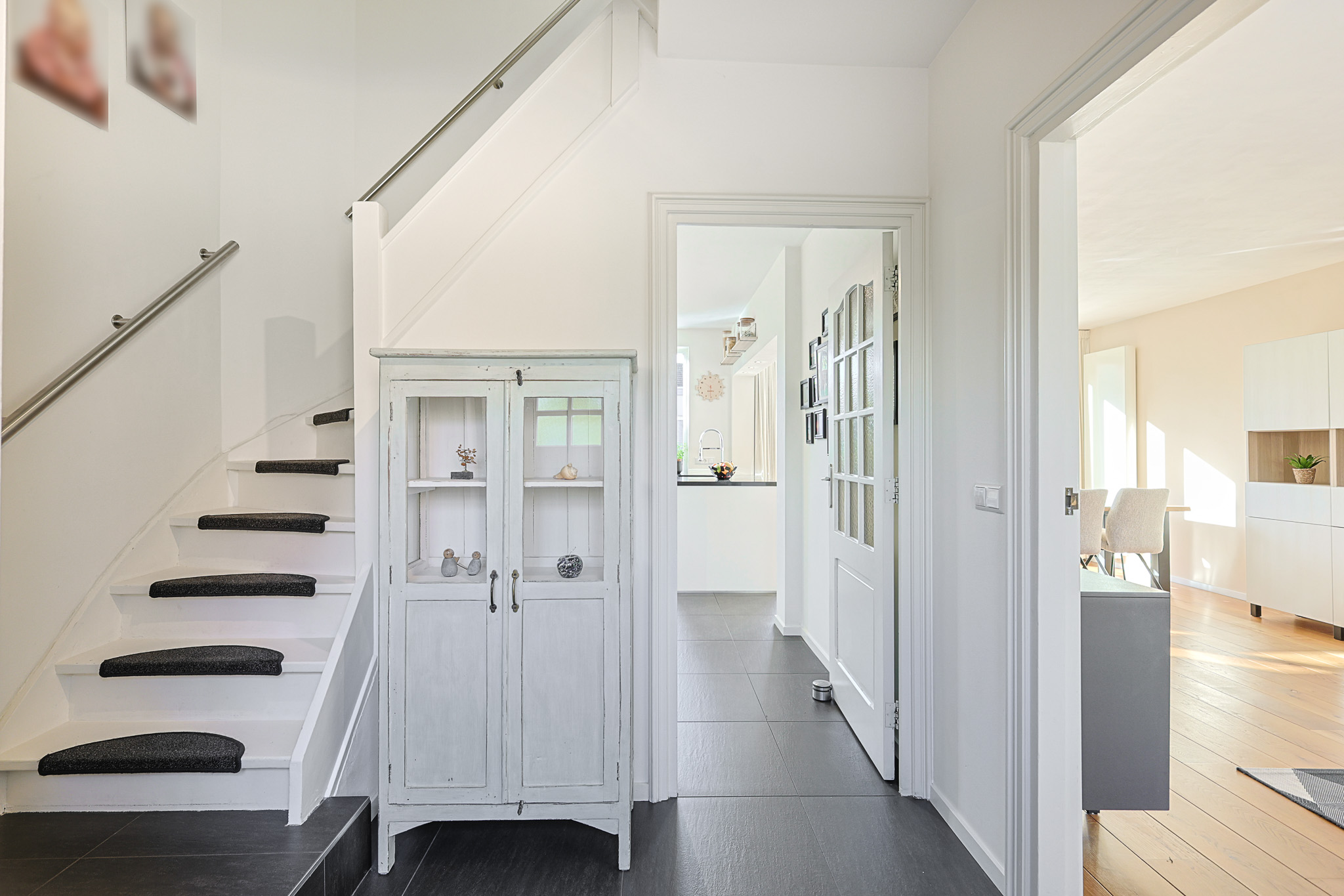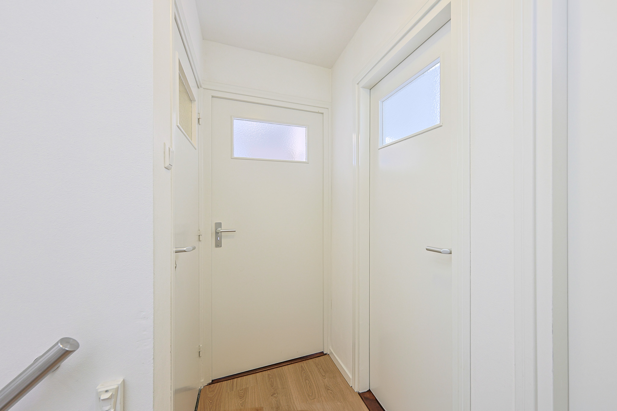Bij binnenkomst treft u een brede hal met kapstok, een separaat toilet met hangcloset, kraantje en raampje voor natuurlijke ventilatie. Vanuit de hal loopt u door naar de lichte en ruime woonkamer.