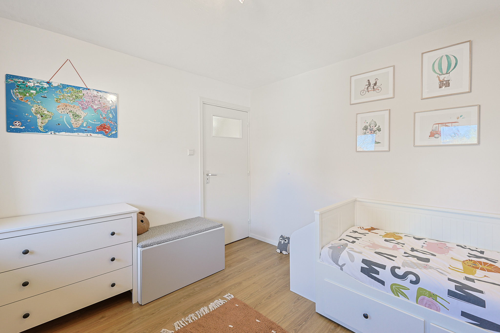 Momenteel ingericht als kinderkamer, eveneens voorzien van hor en rolluik.