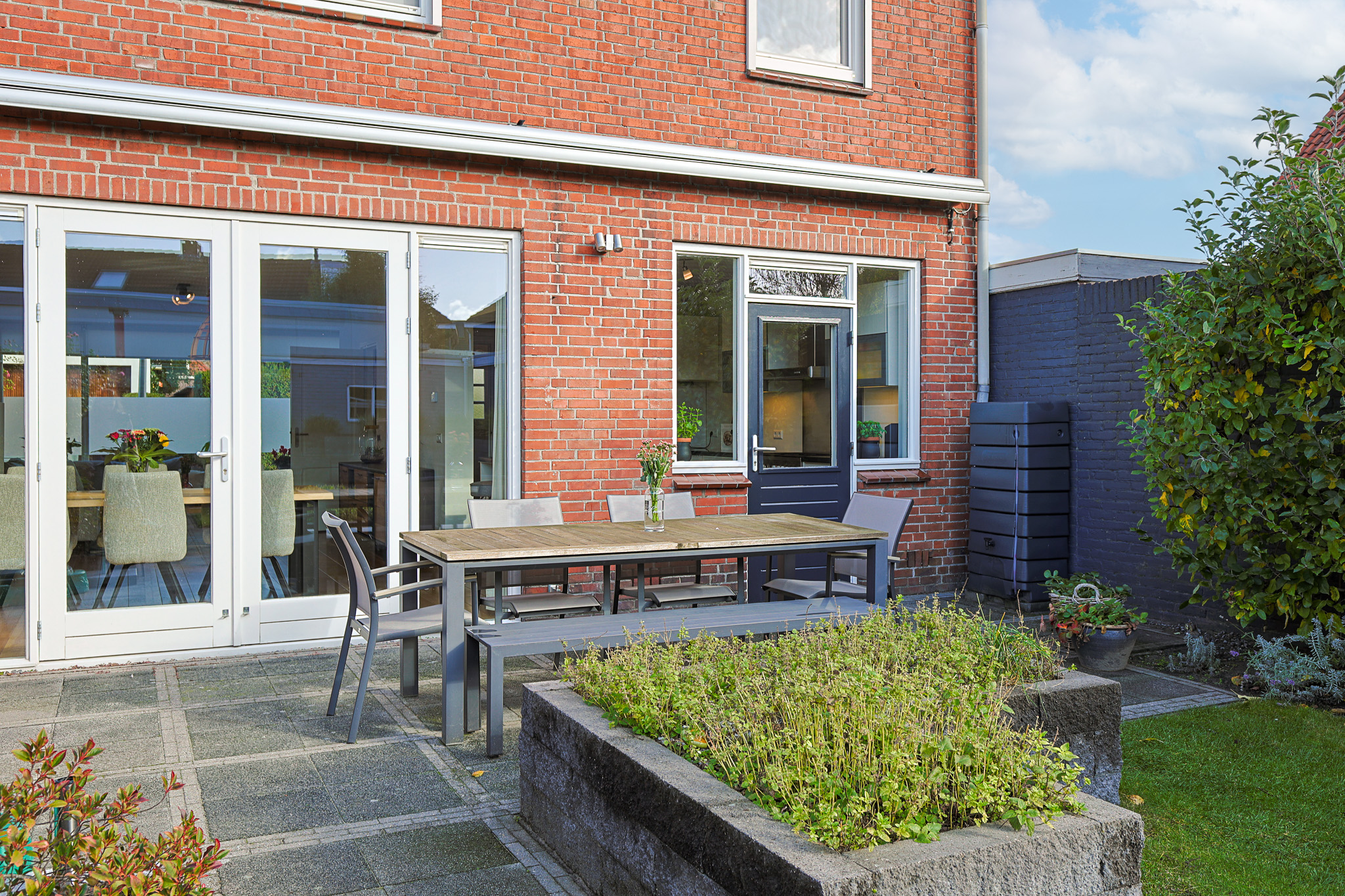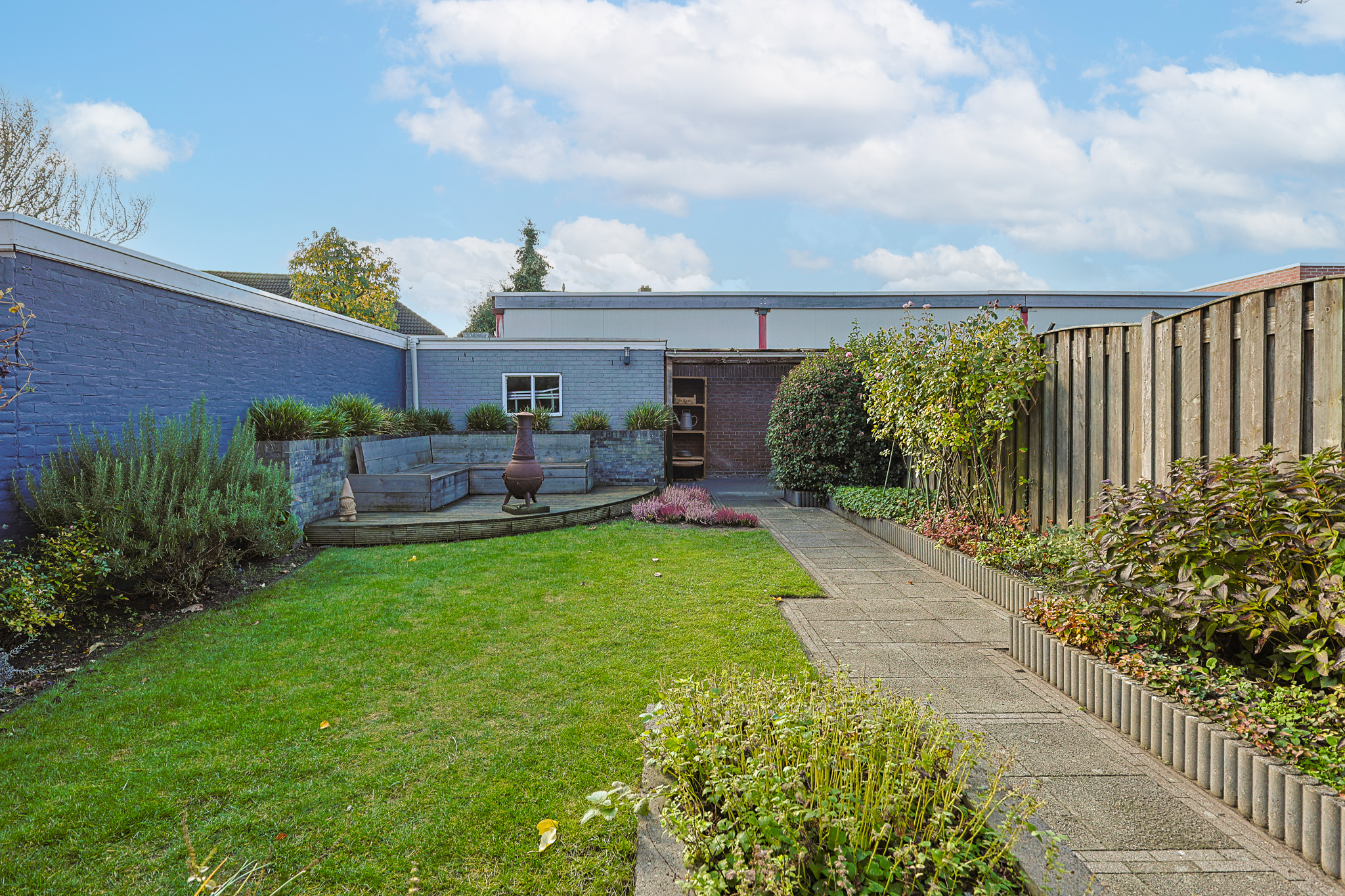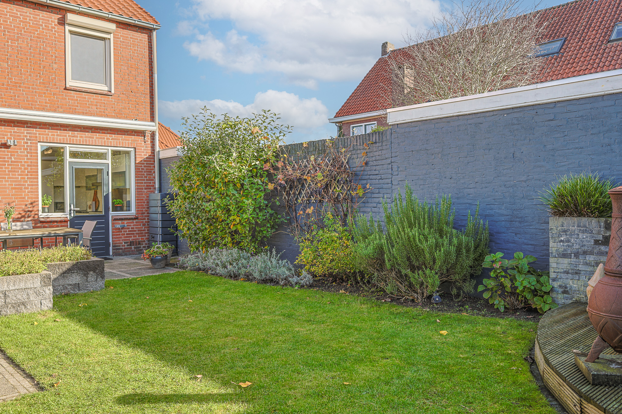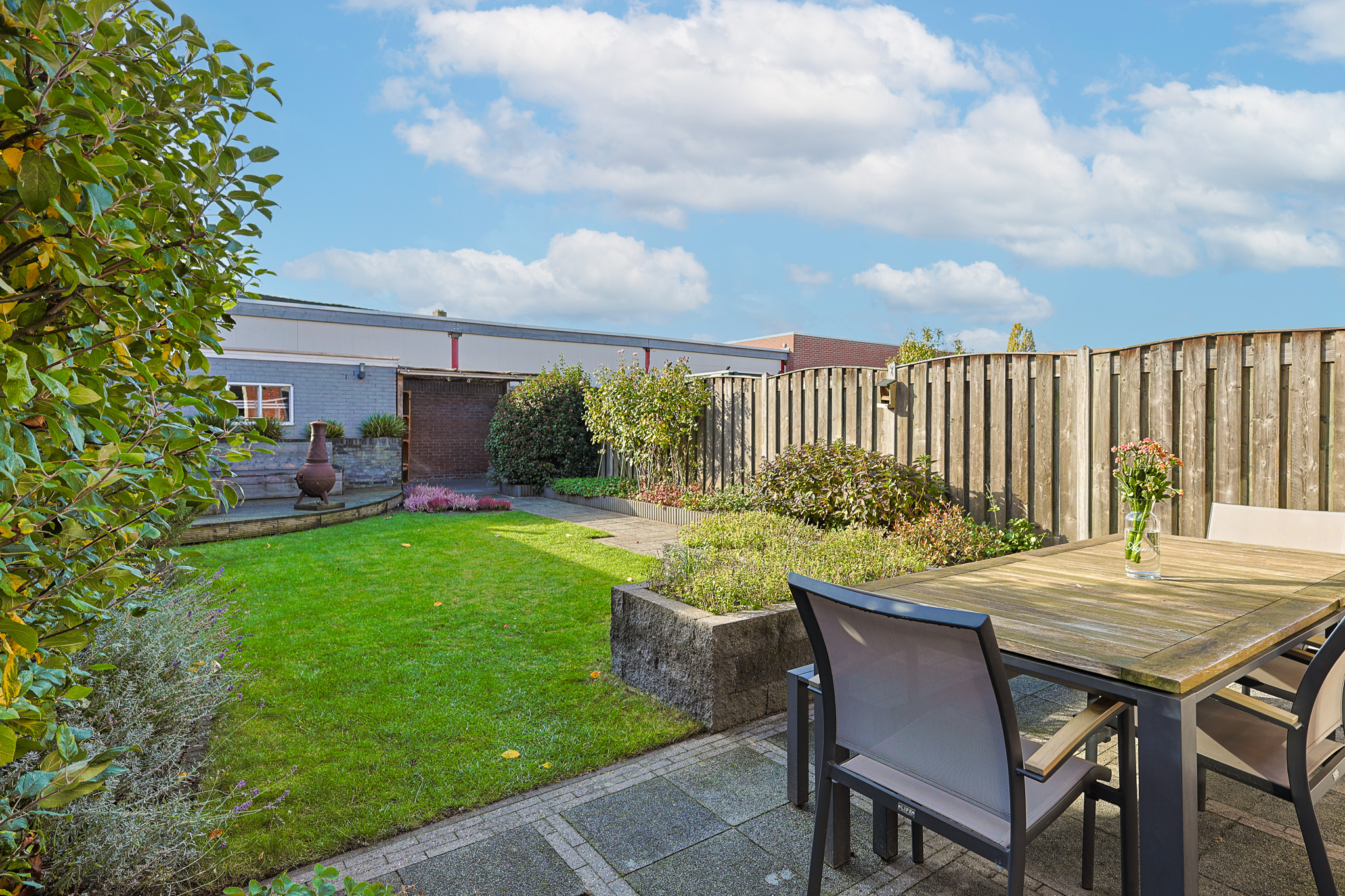 • Diepe zonnige tuin op het zuiden