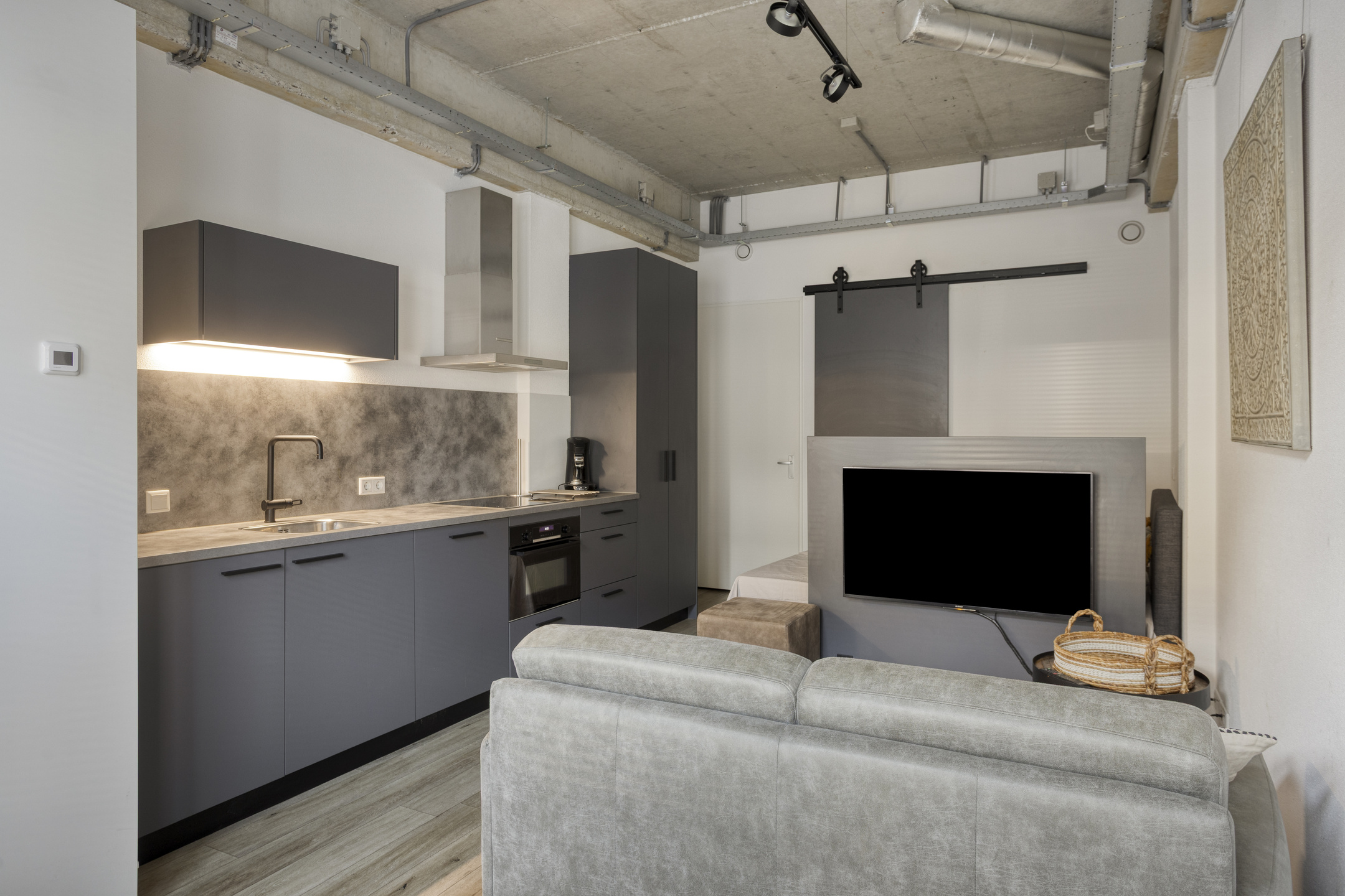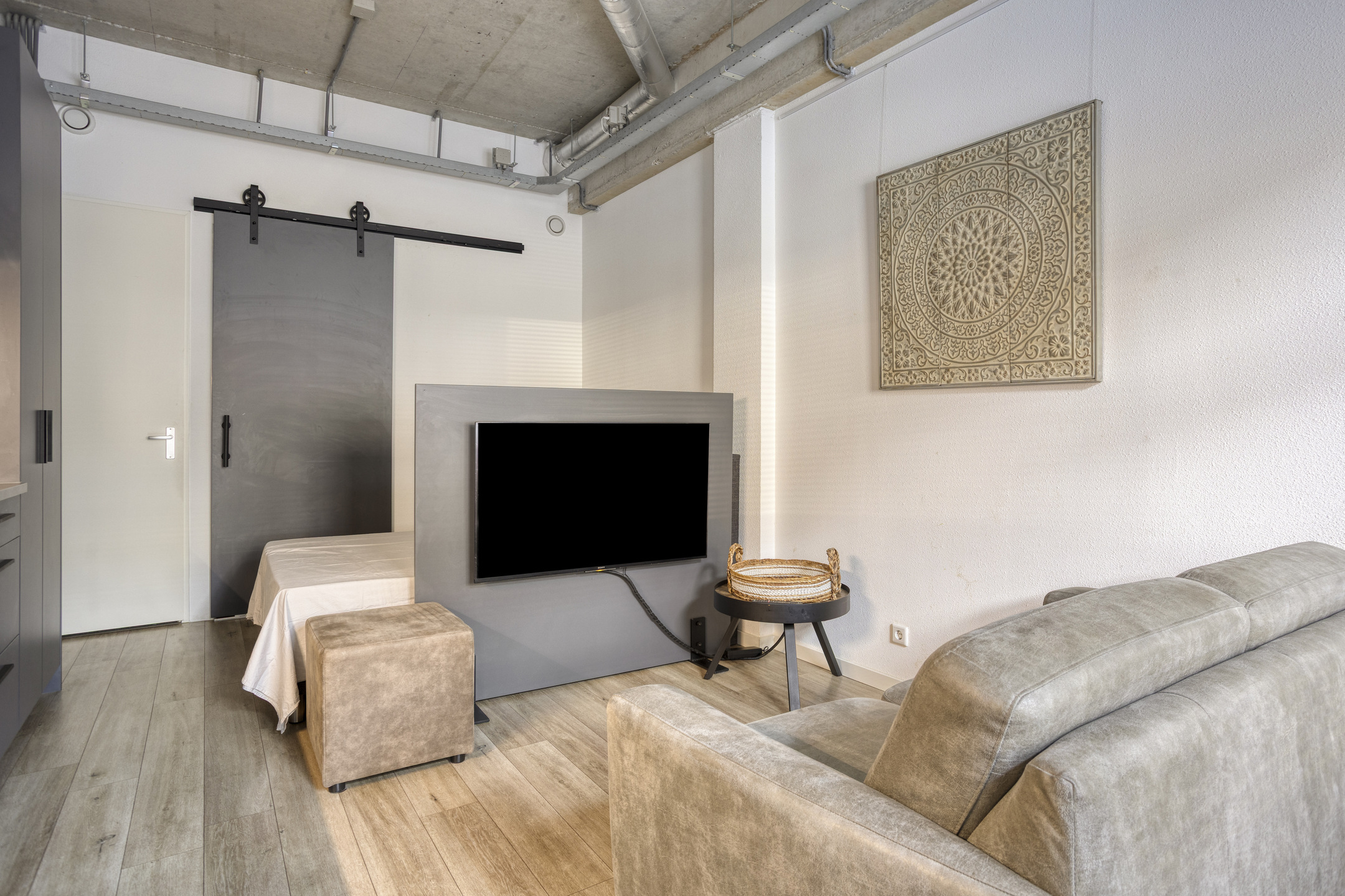 Woon- en slaapcomfort: De studio is slim ingedeeld met een licht woongedeelte en een handig afgescheiden slaapgedeelte.