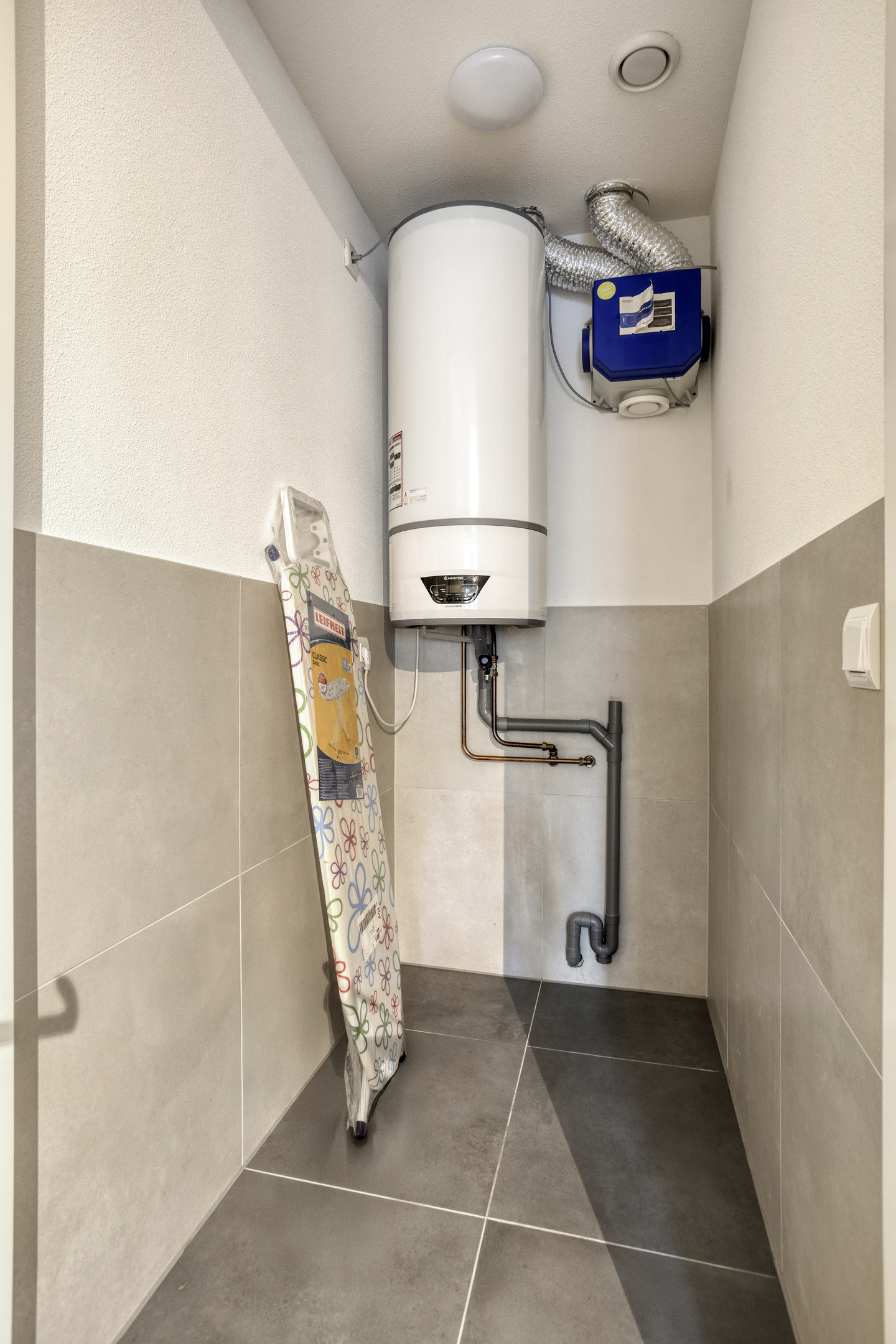 Bergruimte: Er is tevens een aparte ruimte met een warmtepompboiler, ventilatie box en een wasmachineaansluiting aanwezig.