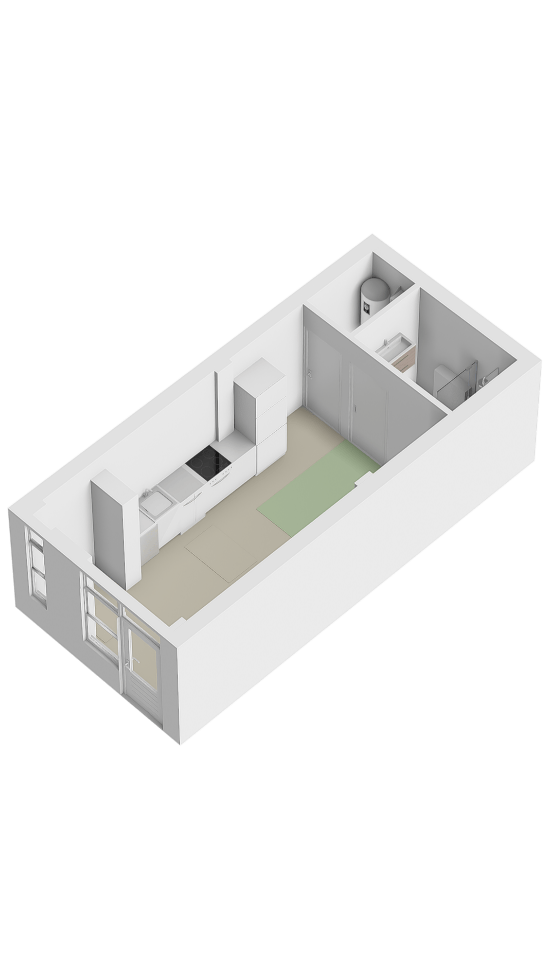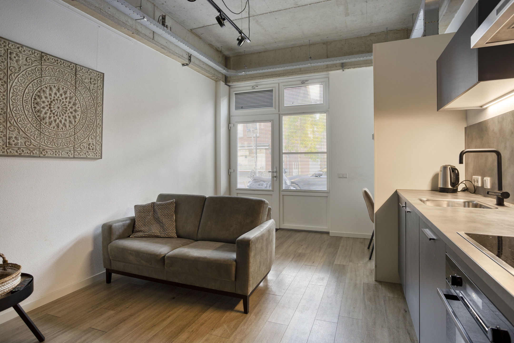 Woon- en slaapcomfort: De studio is slim ingedeeld met een licht woongedeelte en een handig afgescheiden slaapgedeelte.
