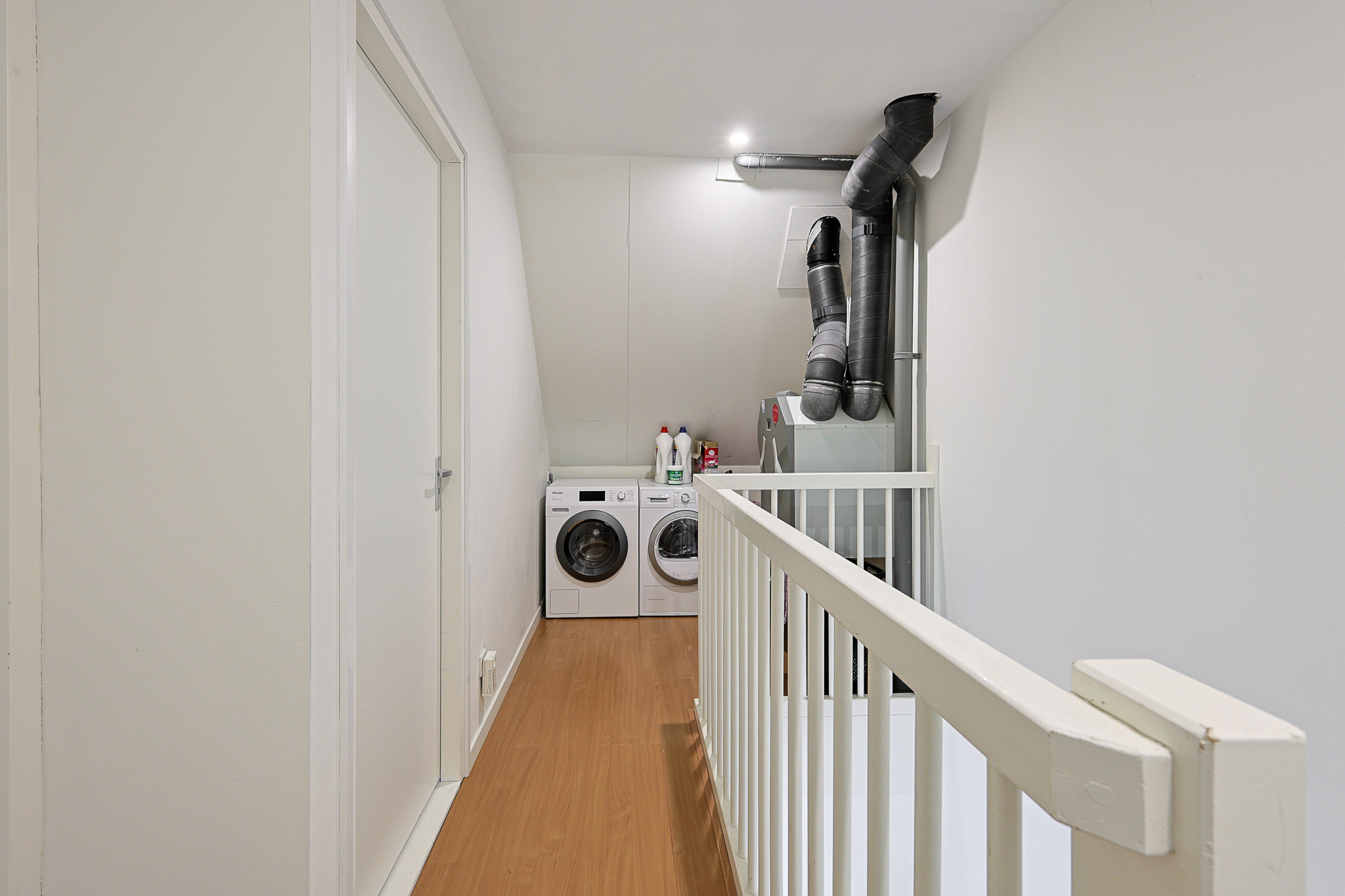 De overloop is voorzien van een laminaatvloer en biedt ruimte voor de wasmachine, wasdroger en WTW-unit. Vanuit de overloop is er toegang tot twee slaapkamers en de badkamer. Ook is er toegang tot vliering (over de gehele breedte van de woning) middels een vlizoluik. Op deze vliering bevindt zich de cv-ketel (Intergas 2009)