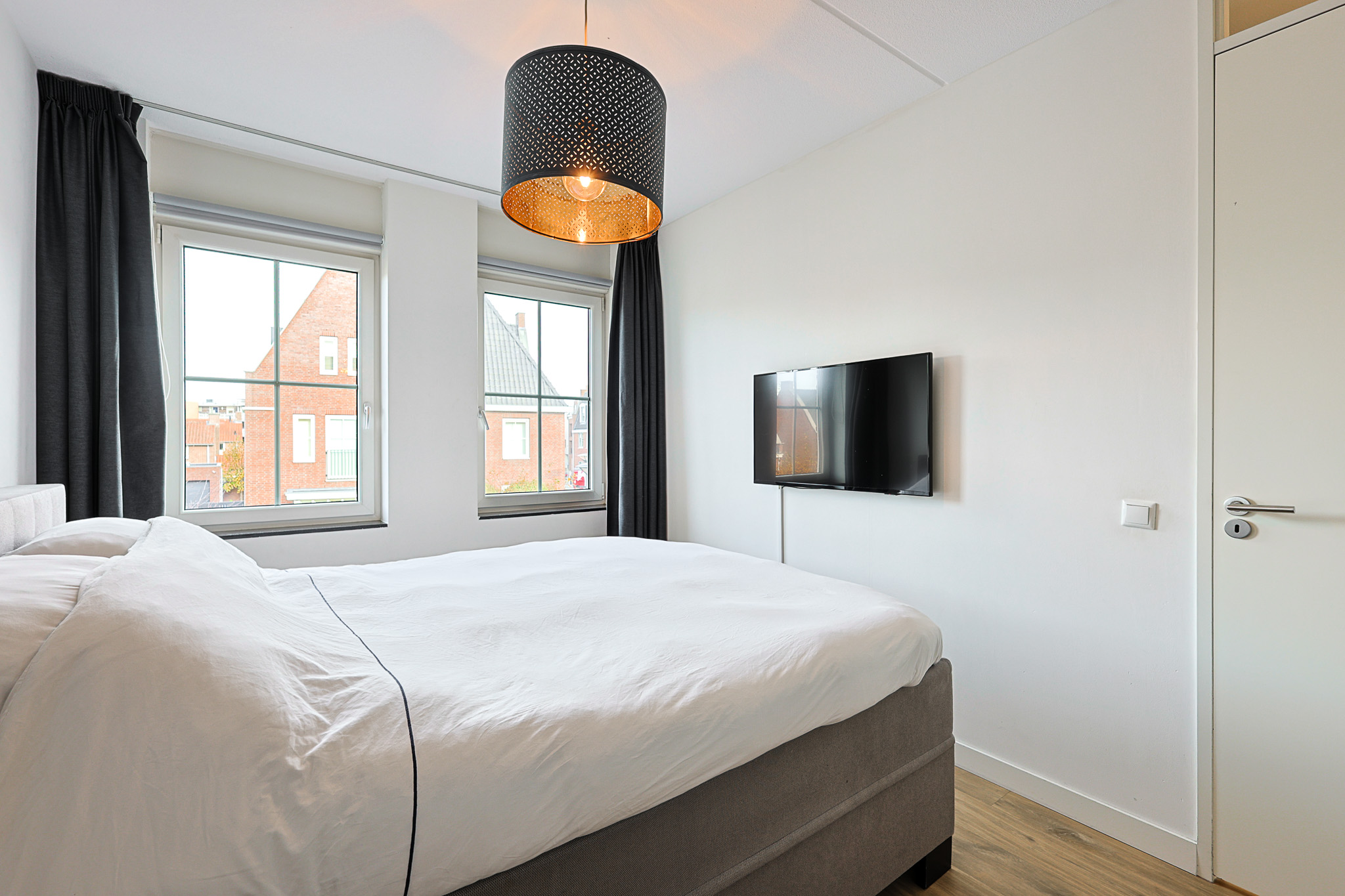 Ruime ouderslaapkamer aan de voorzijde van de woning, voorzien van laminaatvloer, TV- en internetaansluiting, en twee raampartijen met draaikiepmechanisme en hor.