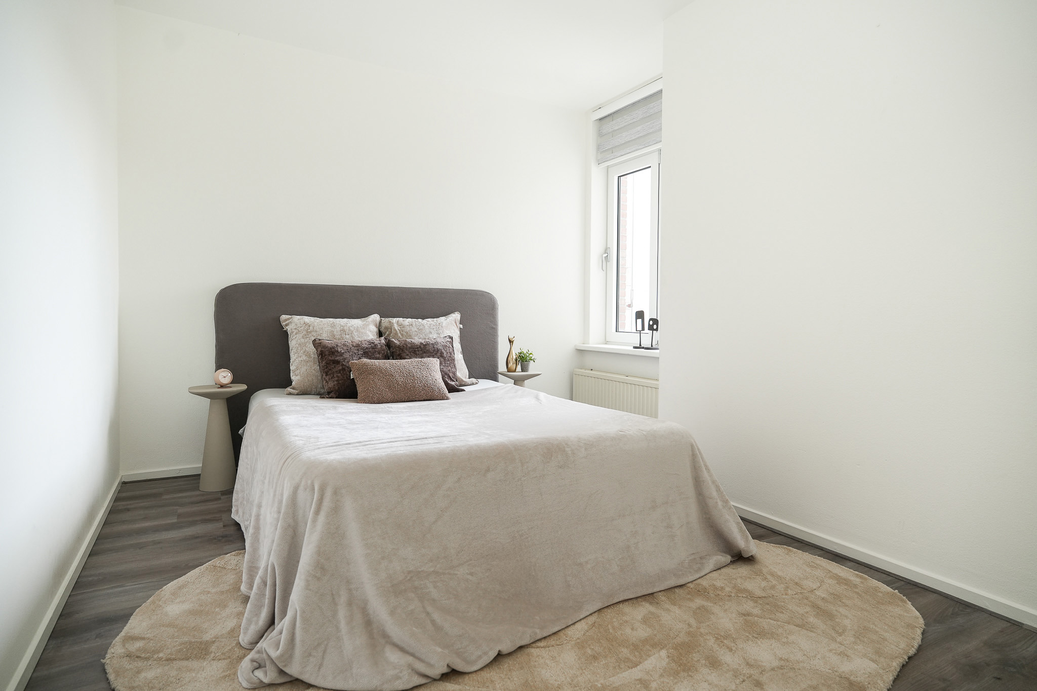 Aan de rustige achterzijde van het appartementencomplex is slaapkamer 1 te bereiken. De kamer is voorzien van grote raampartij met draaikiepraam.