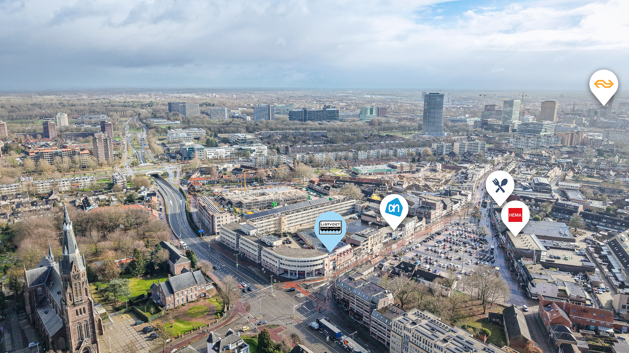 Eindhoven en het Centraal Station. Tevens dichtbij uitvalswegen. De Woenselse Markt is één van de bekendste