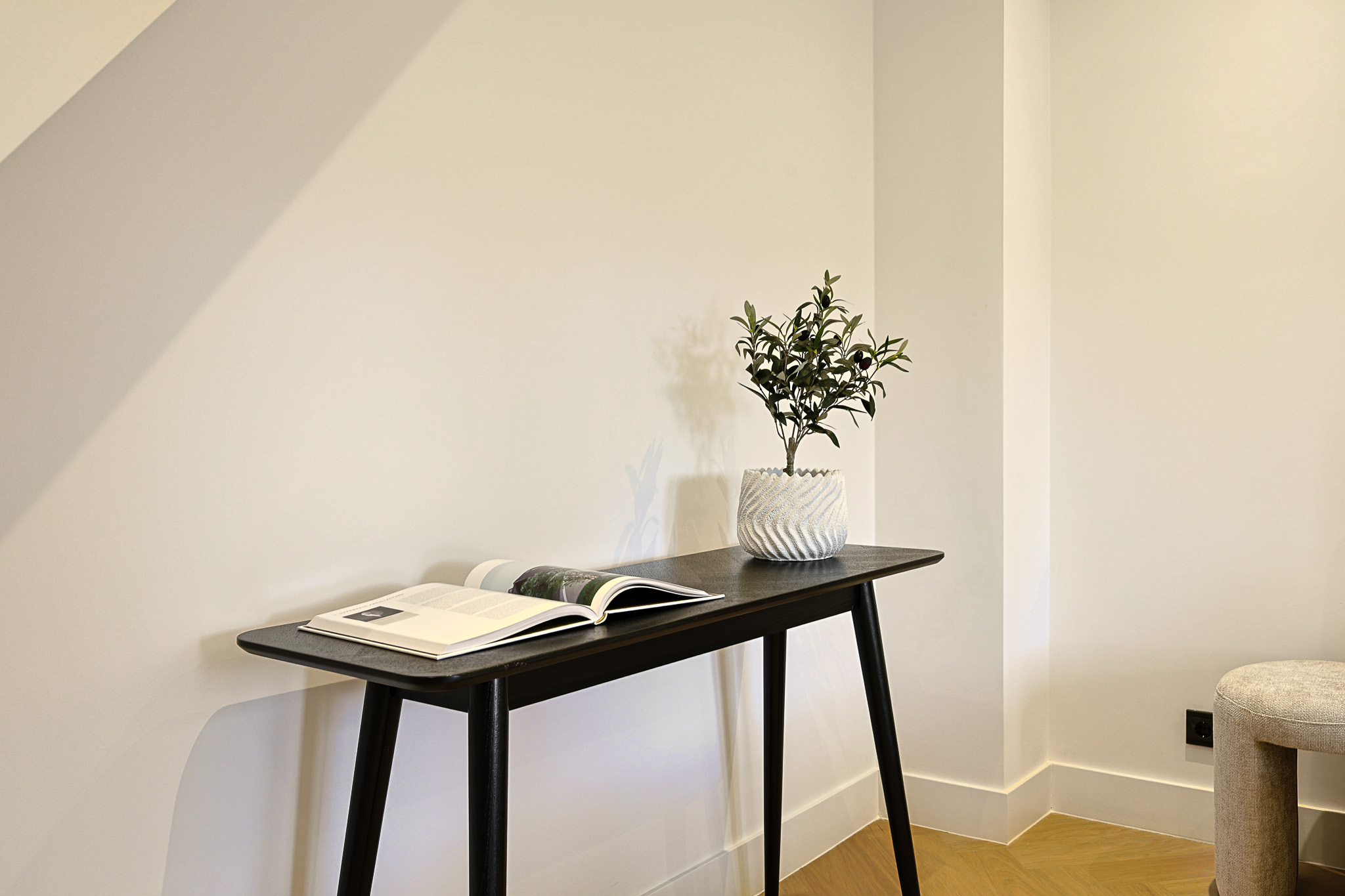 Via de trap met sensorgestuurde verlichting bereik je de tweede verdieping. De overloop is licht door het dakraam en voorzien van smaakvolle getinte spiegels. Deze verdieping biedt toegang tot nog twee slaapkamers.
