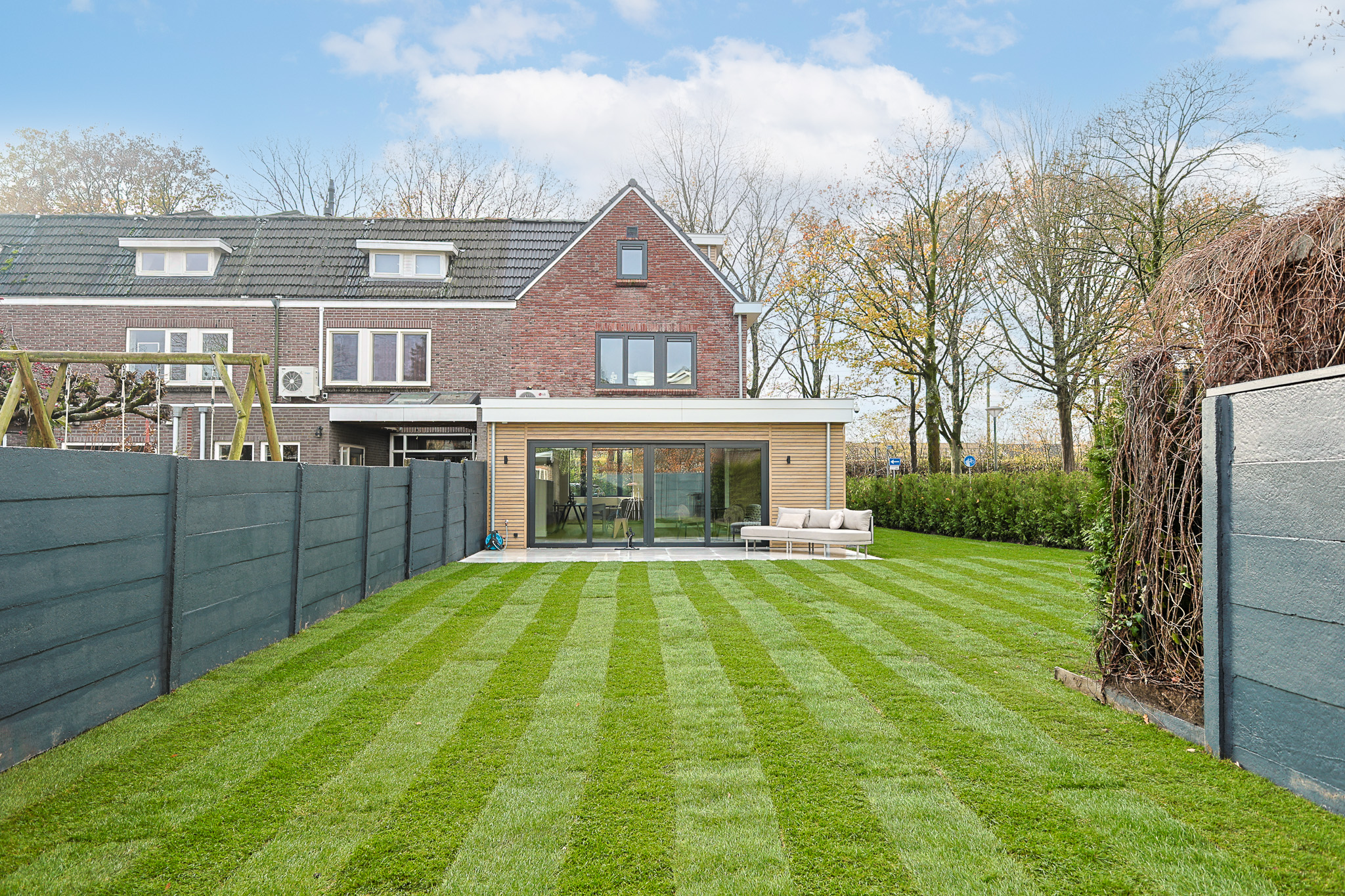 De grote, open achtertuin biedt volop mogelijkheden en is gelegen op het noordoosten. Het gras is nieuw aangelegd en de tuin beschikt over elektra, verlichting en een waterpunt. De tuin loopt langs de woning door naar de voortuin, waardoor het geheel ruimtelijk en open aanvoelt.