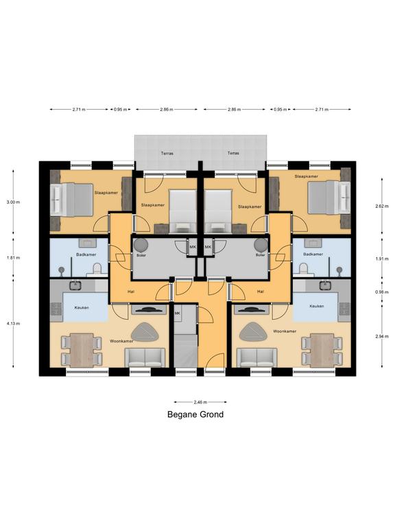 • De koper mag in overleg met de aannemer niet-dragende wanden verplaatsen of andere veranderingen uitvoeren.