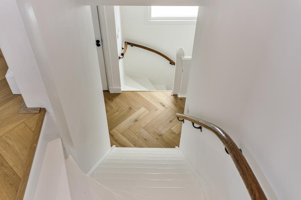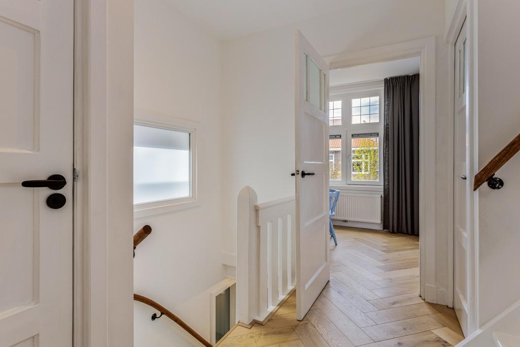 Via de vaste trap komt u op de overloop van de eerste verdieping. Deze overloop kenmerkt zich door de inval van natuurlijk licht en geeft u toegang tot drie slaapkamers, badkamer en separaat toilet. De overloop beschikt over een aansluiting voor WiFi. Daarnaast kunt u via de vaste trap naar de tweede verdieping.