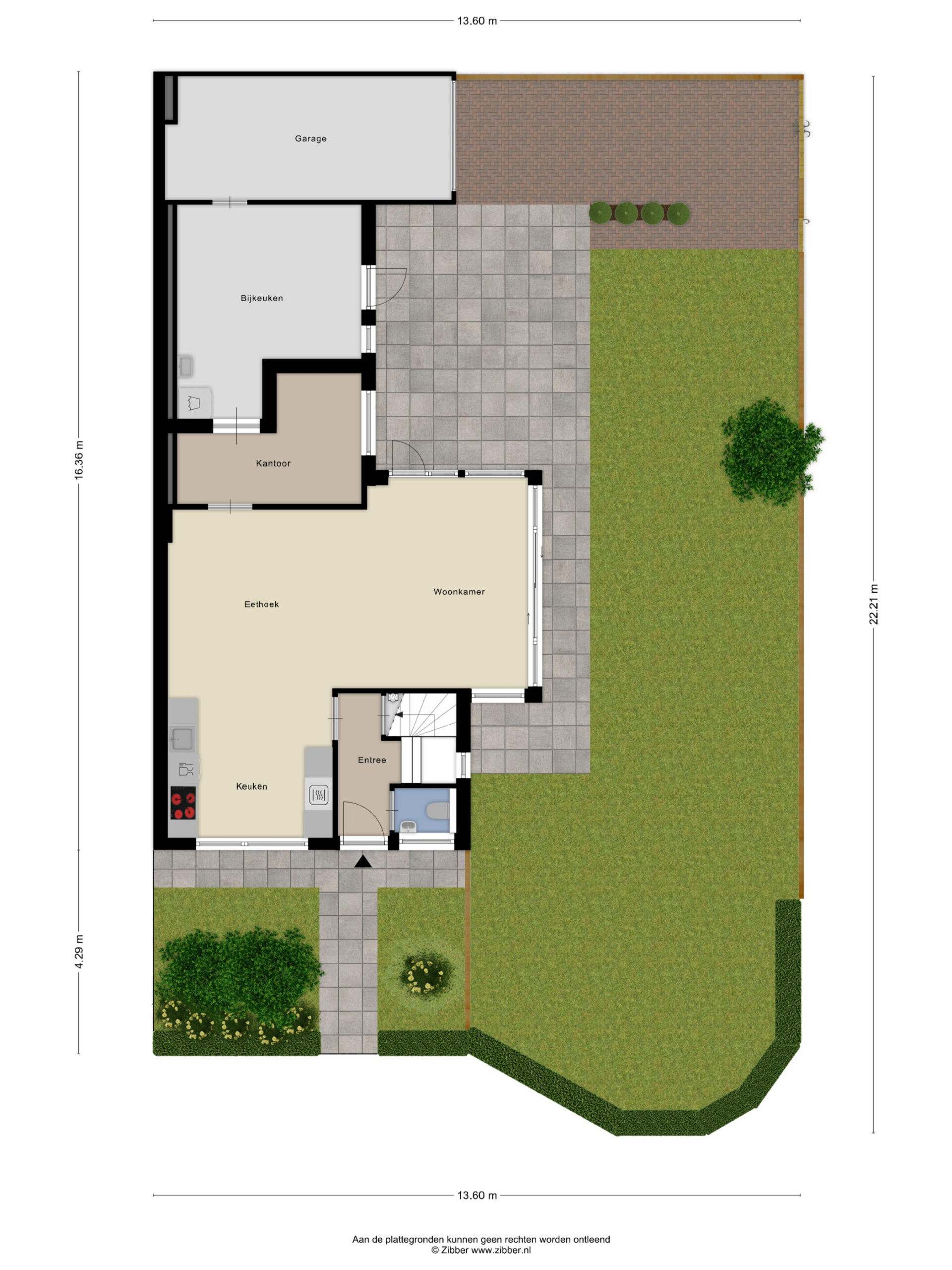De verzorgde tuin ligt gelegen op het zuidwesten en rondom de woning, voornamelijk aan de rechterzijde. Hier vindt u een eigen oprit en een achterom, waardoor de woning makkelijk bereikbaar is. Een aparte loopdeur geeft extra toegang tot het ruime terras. De tuin is ruim opgezet en biedt veel mogelijkheden.