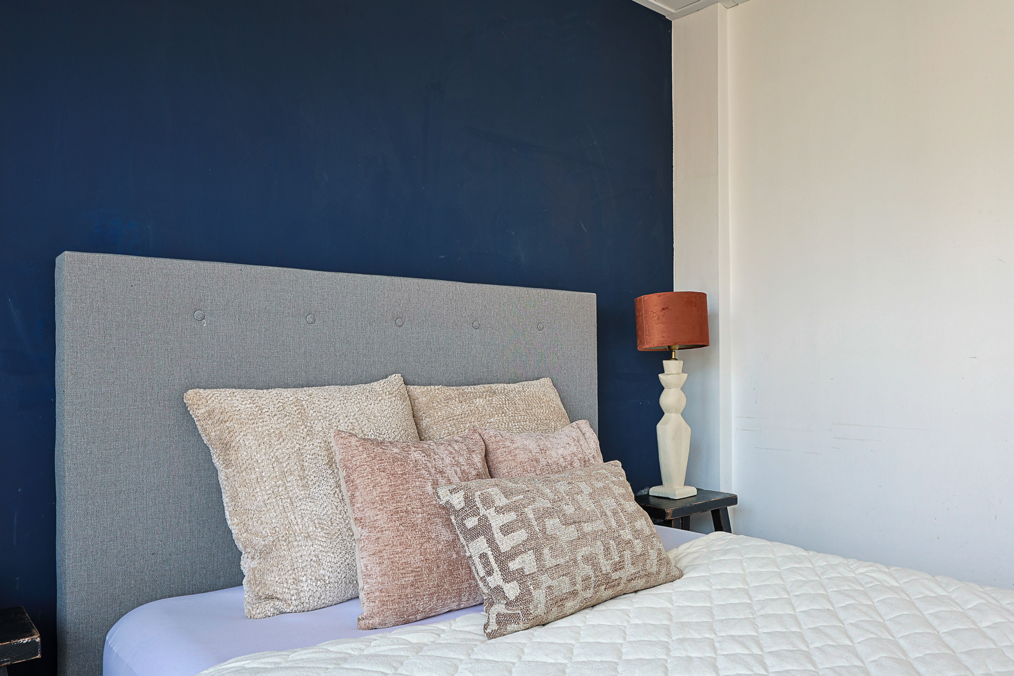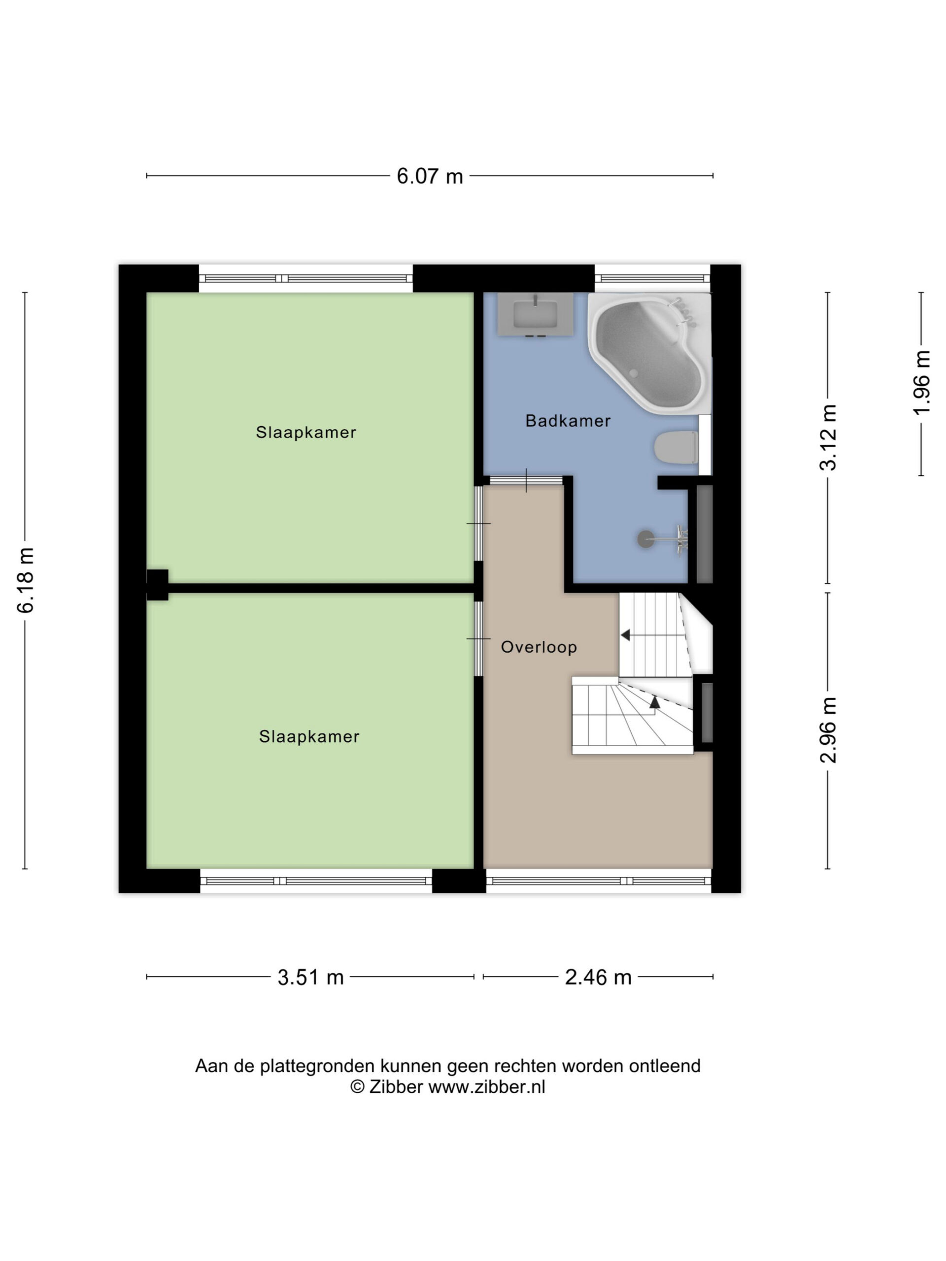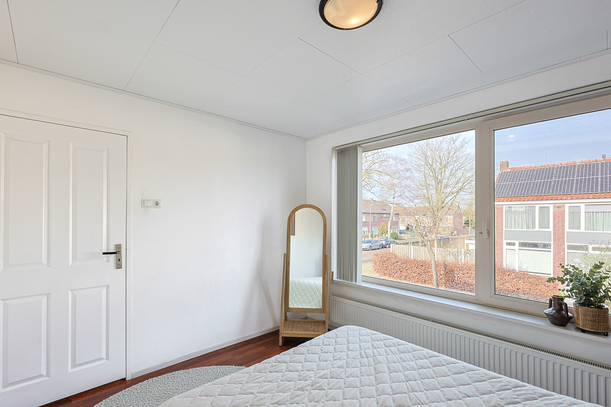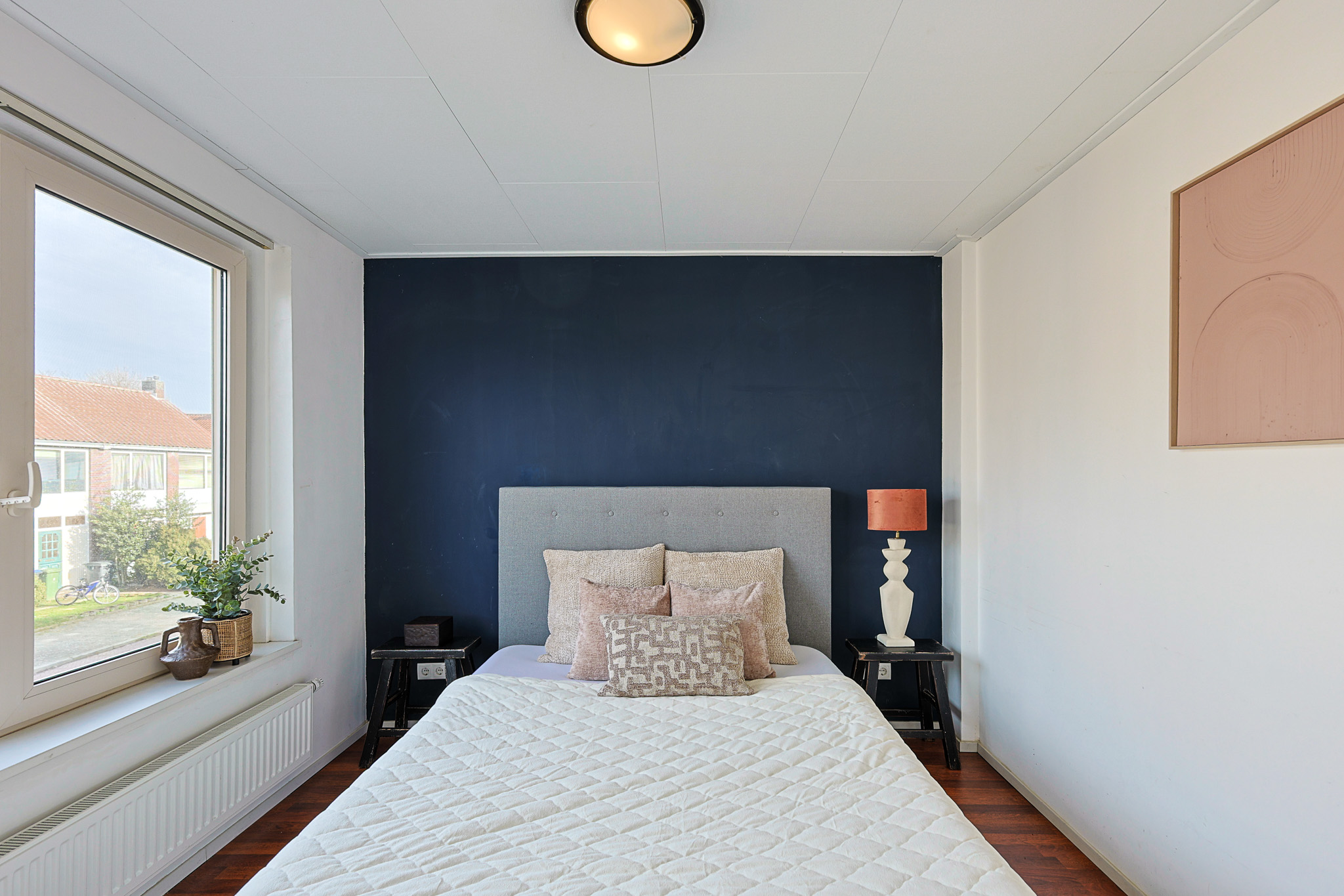 Aan de achterzijde van de woning ligt de eerste slaapkamer, een ruime kamer met een groot raam en kastruimte. Aan de voorzijde bevindt zich de tweede slaapkamer, eveneens voorzien van een royale raampartij, waardoor ook hier veel licht binnenkomt. De overloop biedt ruimte voor de vaste trap naar de zolder, waar ook de omvormer van de zonnepanelen en de CV-ketel zijn geplaatst.